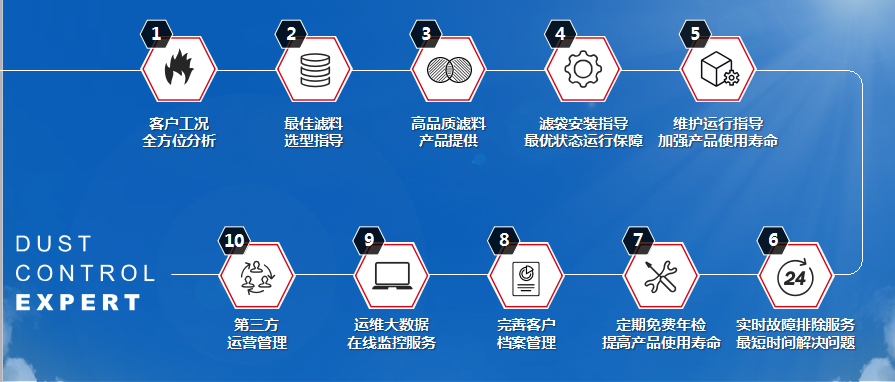提供售前、售中、售后的全環(huán)節(jié)專業(yè)陪伴:客戶工況*********分析、合理濾料選型指導(dǎo)、高品質(zhì)濾料產(chǎn)品提供、濾袋安裝指導(dǎo)***優(yōu)狀態(tài)運(yùn)行保障、維護(hù)運(yùn)行指導(dǎo)、實(shí)時(shí)故障排除、定期免費(fèi)年檢、完善客戶檔案管理、運(yùn)維大數(shù)據(jù)在線監(jiān)控及第三方運(yùn)營管理服務(wù)。